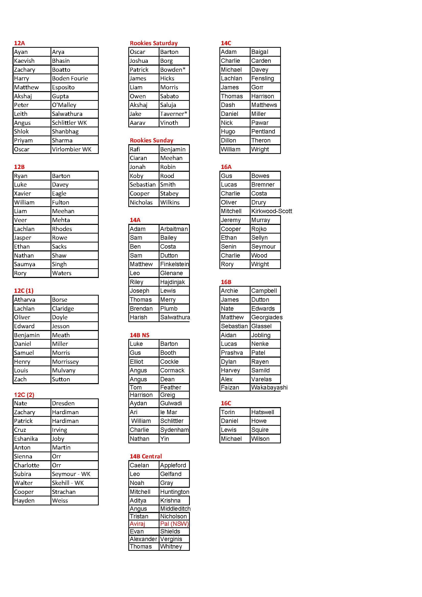 The fixtures will be released next week and team managers will advise venues and opponents early next week. Here are the full team squads and please contact us urgently if your child is not listed. We will communicate separately with the Under 16C players during the week.